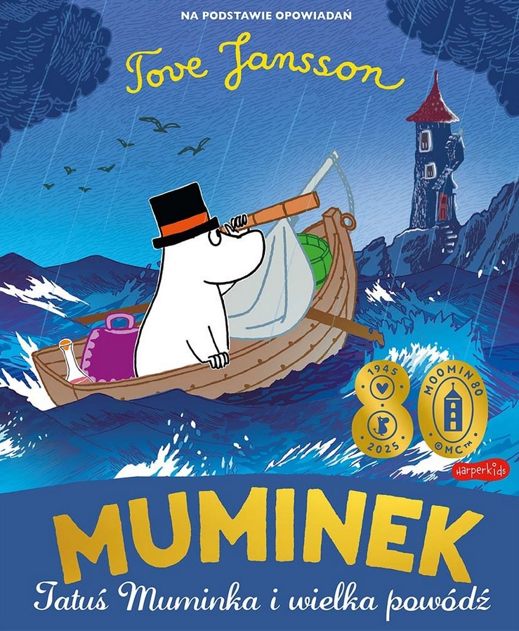 Gdy na dworze szaleje burza, Tatuś Muminka snuje opowieść o wielkiej powodzi, która przed laty porwała Dom Muminków. Dołącz do zasłuchanego Muminka i pozwól się oczarować opowiadaniu Tatusia. Przekonaj się, jakie perypetie towarzyszyły bohaterom poszukującym utraconego domu i co dobrego może wyniknąć z katastrofy takiej jak powódź. Ta przepiękna, ciepła i pełna optymizmu historia to nowa interpretacja pierwszego i jednego z najbardziej znanych muminkowych opowiadań Tove Jansson. Napisana na nowo prostym językiem będzie zrozumiała dla najmłodszych dzieci. Może stanowić dla nich zarówno ciekawą historię, jak i mądrą przypowieść o tym, że nawet najgorsze wydarzenia są w stanie nieść ze sobą pozytywne zmiany. Starsi czytelnicy odnajdą tu niezwykły, bezpieczny klimat świata Tove Jansson, który znają z własnego dzieciństwa, i docenią ujmujące, przygotowane na podstawie oryginalnych grafik autorki ilustracje. Ta piękna książka będzie idealną lekturą dla całej rodziny i punktem wyjścia do fascynujących rozmów z najmłodszymi [opis wydawcy].