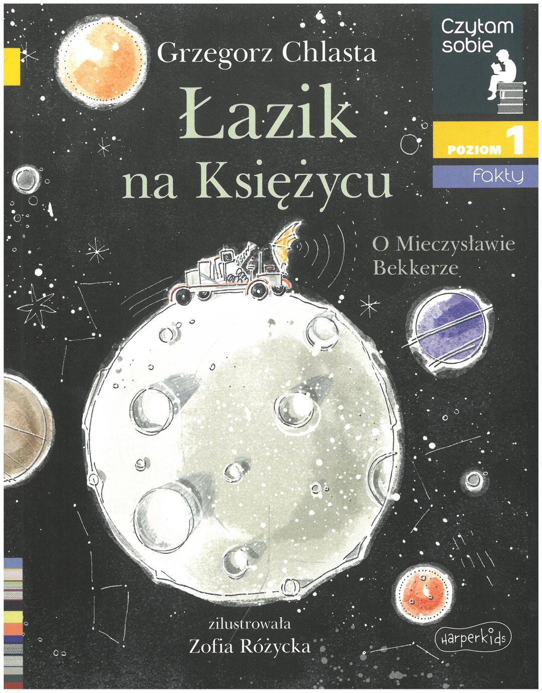 Łazik na Księżycu : o Mieczysławie Bekkerze / Grzegorz Chlasta ; zilustrowała Zofia Różycka. - Warszawa : Harperkids, © 2020. - 31, [1] strona, [1] karta tablic : ilustracje kolorowe ; 19 cm.